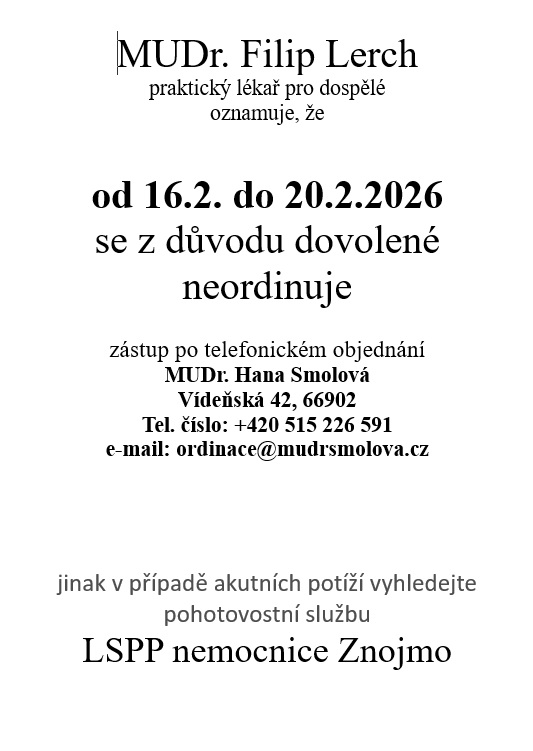 dovolená 16.2. - 20.2.2026